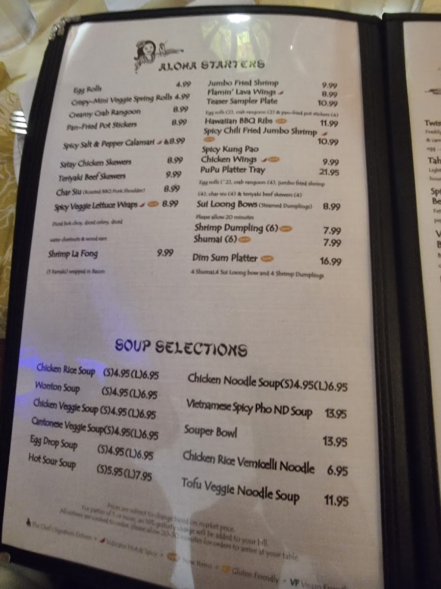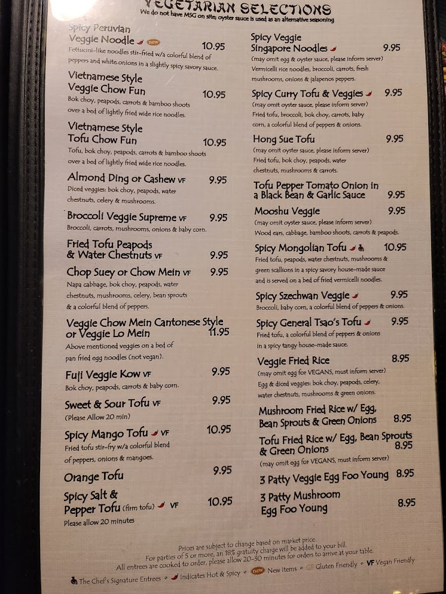 - Soup: A range of soups is also offered, covering traditional favorites like Wonton Soup, Hot & Sour Soup, Egg Drop Soup, and Chicken Noodle Soup, as well as Vietnamese-inspired Pho and various vegetable and tofu noodle soups.